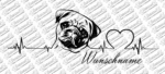 Ein Mops an einer Pulslinie mit einem Herzen und Wunschname